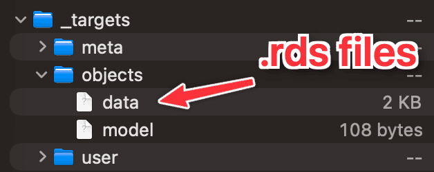 {targets} stores each target as an extension-less .rds file in _targets/objects: